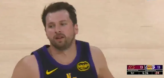 比赛第一节,东契奇反击加速推进,小手一抖助攻詹姆斯双手灌框。